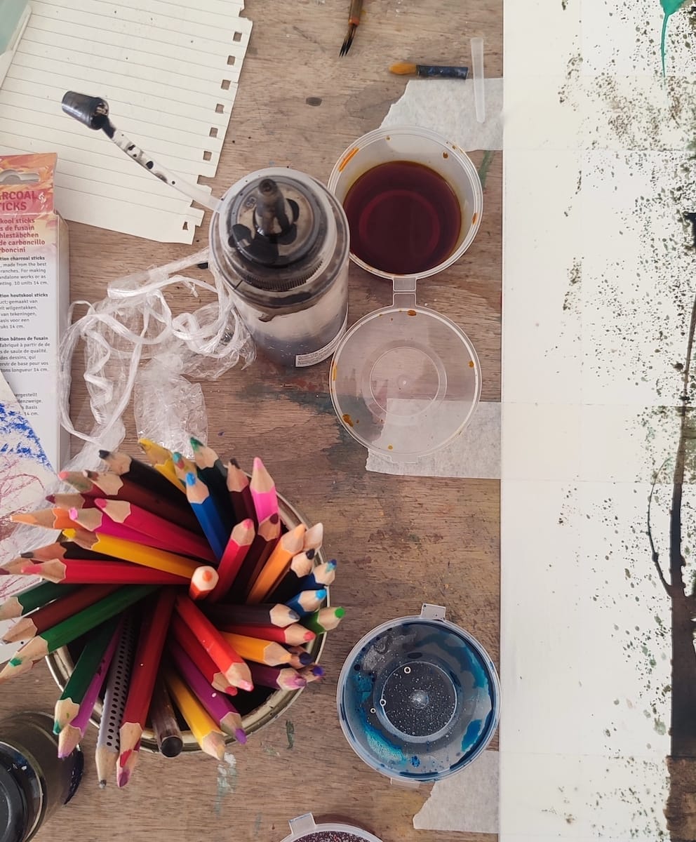 Basic materials you will be needing: canvas, notebook, pencils, sketchbook, water based colours and tools of your choice, cloths that can get covered in paint, and last but not least, your inspiration.